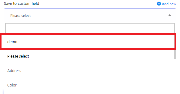 6. Use Added new Custom field: After creating a new custom field, you can choose it from the `Save to Custom Field` pop-up menu.