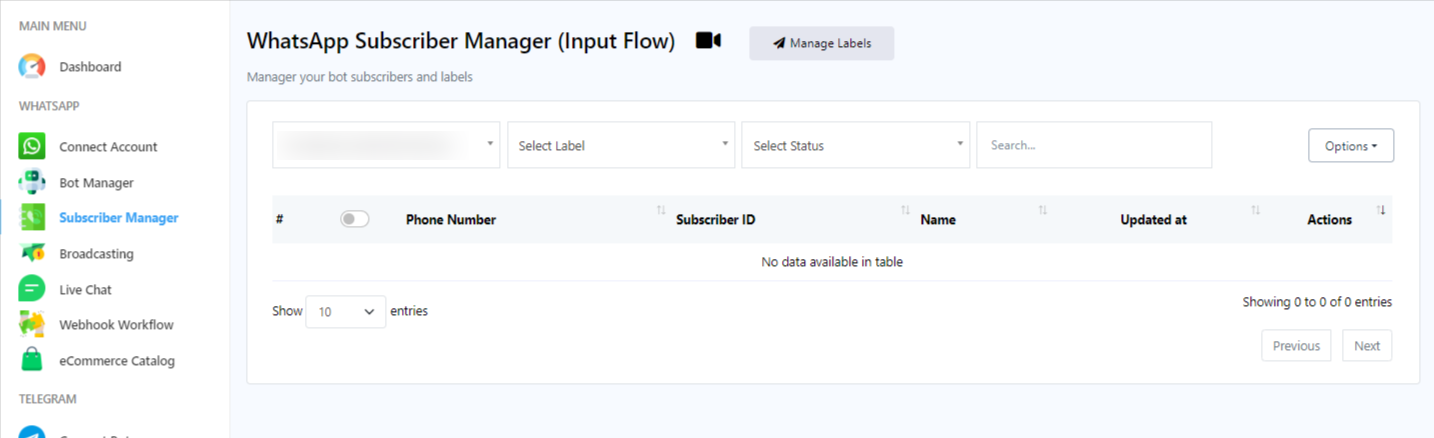 - Click on Action to unsubscribe a subscriber, pause or resume the bot reply, reset user input flow, or sync subscriber data.